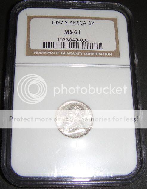 1897 Tickey (3d) Paul Kruger ZAR : NGC graded MS61 (MINT STATE) Catalogues at R2500.00.