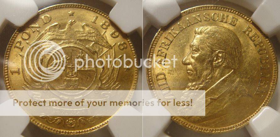 1898 GOLD Pond : Paul Kruger ZAR (NGC Graded MS62)
