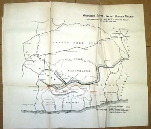 1899 Map of the Proposed Indwe - Natal Border Railway - Accompanying the Late Mr P Fletcher's Report dated 12th June 1896