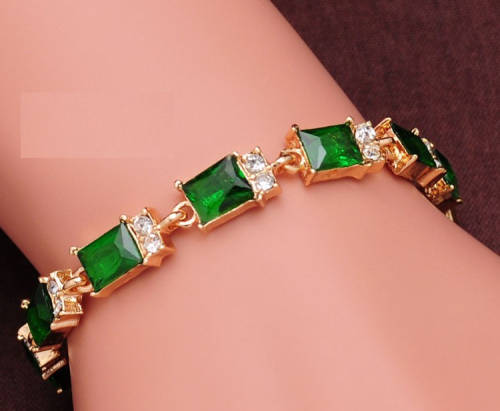 18cm Cr. Green Topaz Set in 18ct Yellow Rolled Gold Tennis Bracelet