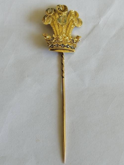 18ct Yellow Gold and 9ct Yellow Gold Cravat Lapel PinĀ set with Ducal Coronet with Feather Spray with Rose cut Diamonds
