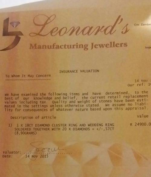 18 ct SOLID GOLD - and real diamonds, see valuation from jeweller size is "O and a half"