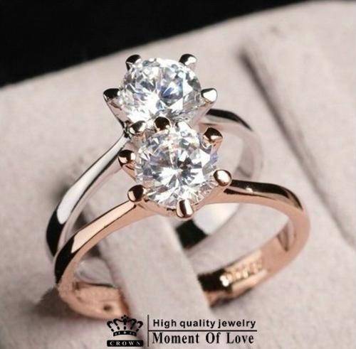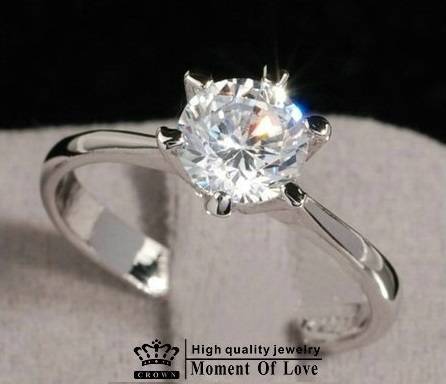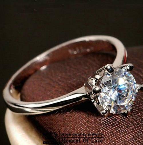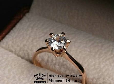 18K Gold Plated Classic design 1 carat 6mm simulated diamond wedding rings for women