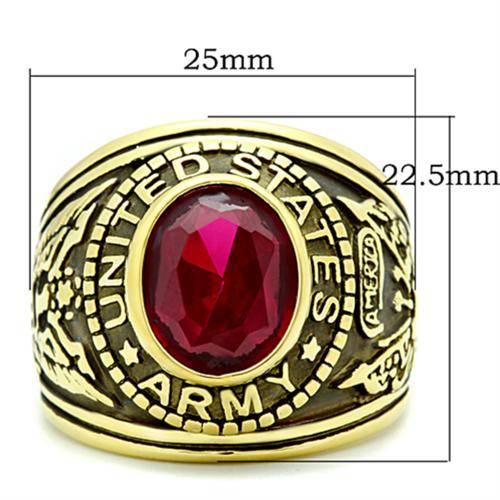 18K GOLD PLATED OVER STAINLESS STEEL SIMULATED RUBY MEN'S RING
