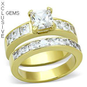 18K GOLD PLATED SIMULATED DIAMOND WEDDING RING SET