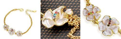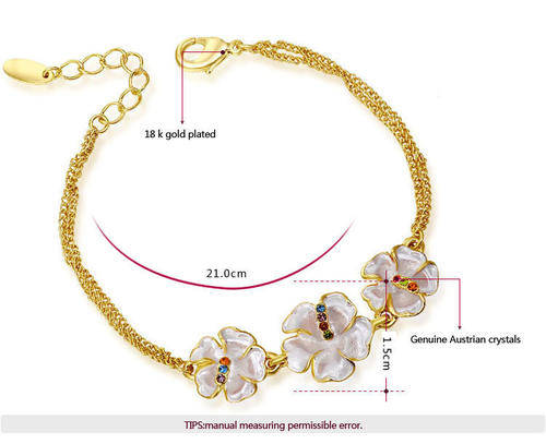 18k RGP yellow gold flower bracelet with genuine Austrian crystal detail
