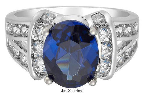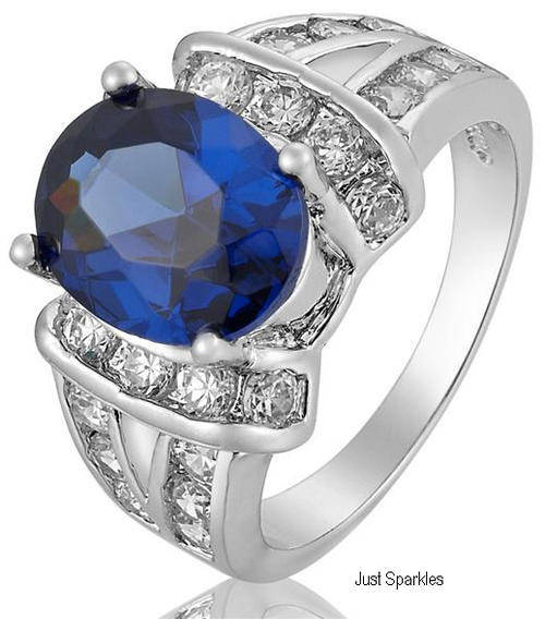 18K WHITE GOLD PLATED SIMULATED SAPPHIRE LADIES RING