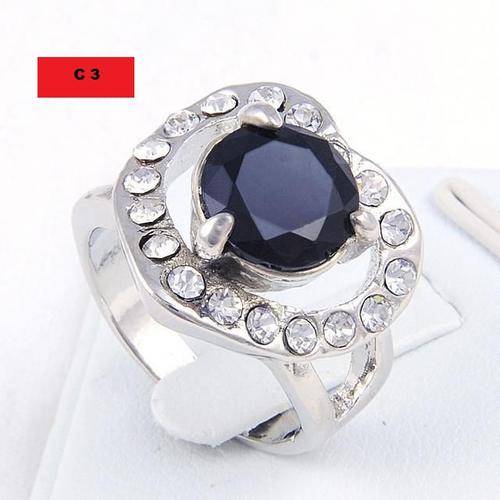 18K White GP Cocktail Heart Black Diamante Zircon CZ