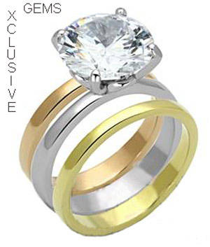 18K YELLOW GOLD PLATED SIMULATED DIAMOND WEDDING RING SET