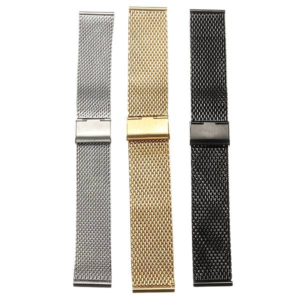 Specification: Watch Band Size: 18mm:app 17 (Length) x 2 (Width) cm x 0.2 (Thickness) cm 20mm:app 17.2 (Length) x 2.1 (Width) x 0.2 (Thickness) cm 22mm:app 17.4 (Length) x 2.3 (Width) x 0.2 (Thickness) cm Size Type:18mm/20mm/22mm Colours:Black/Gold/Silver (Choose The One You Like) Main Material:Stainless Steel Weight: about 73g (22mm)/about 63g (20mm)/about 51g (18mm)