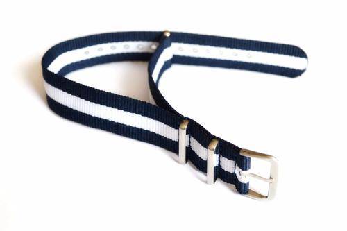 18mm Dark Blue Navy White Military Nylon Sport Watch Strap Band Wristwatch
