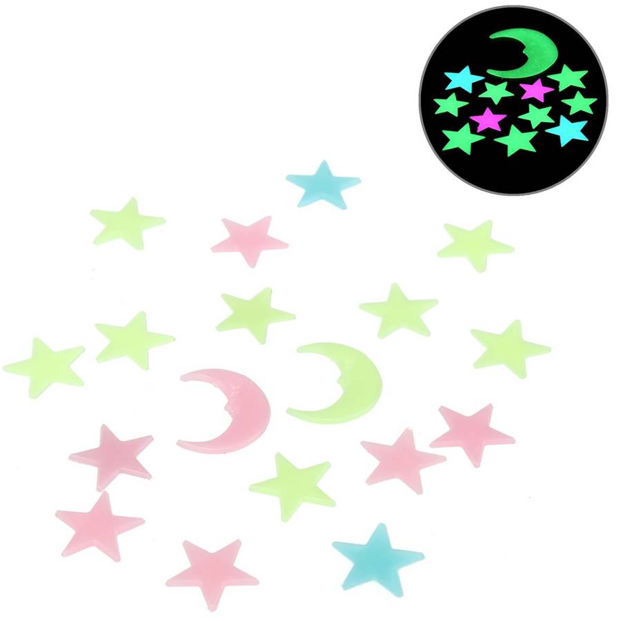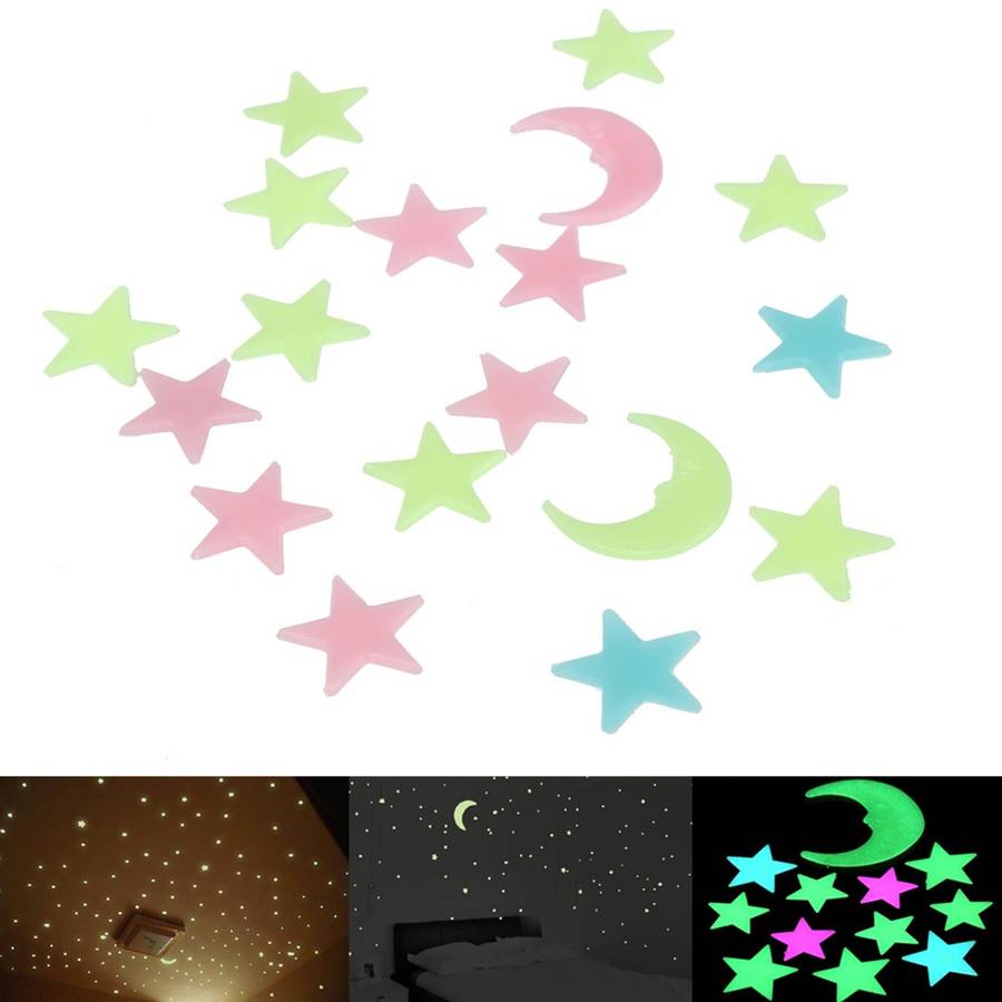 18Pcs Plastic Glowing In The Dark Moon Stars Stickers Wall Art Home Party DIY Decor Wall Stickers