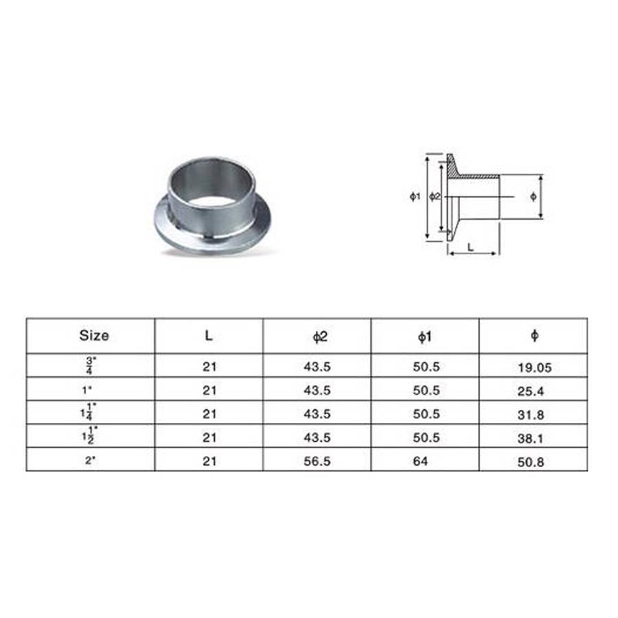 | Product | 19/25/32/38/45/50mm Sanitary Pipe Weld Ferrule Set Gasket Tri Clamp OD (Size 50mm) |