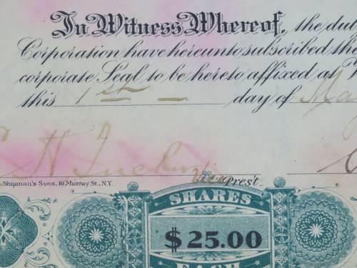 Each certificate is a piece of history about a company and its business. Some companies became major successes, while others were acquired and merged with other companies. Some companies and industries were successful until they were replaced by new technologies. Some companies have even been the center of some scandal or fraud. The color, paper, signatures, dates, stamps, cancellations, borders, pictures, vignettes, industry, stock broker, name of company, transfer agent, printer, and holder name all add to the uniqueness of the hobby.