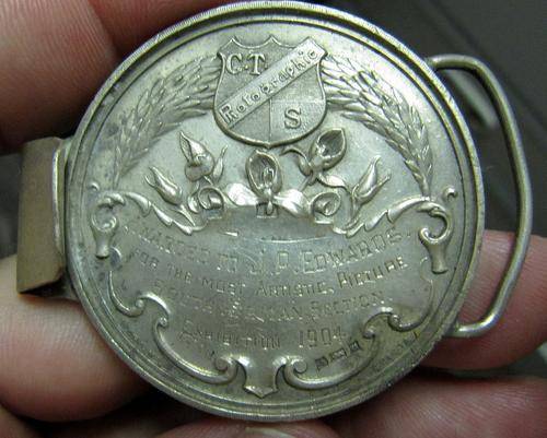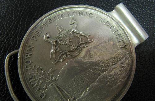 1904 Cape Town Photographic Society silver medal awarded to JP Edwards made into a belt buckle