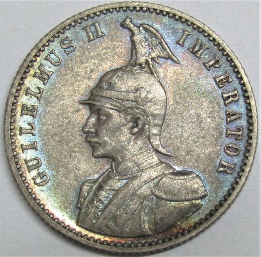 Highly collectible problem-free example of this very popular German colonial issue In Extremely Fine condition and with amazing electric-blue peripheral toning and with orange,red and gold hues in the fields.It really is as good as it looks.