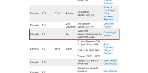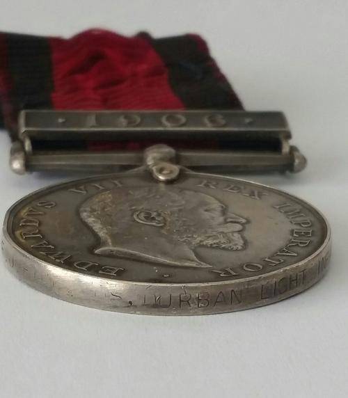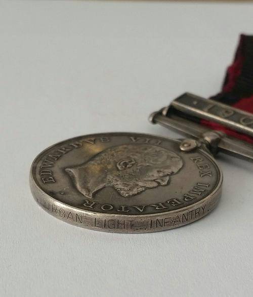 1906 Natal Rebellion Medal issued to SGT F.J. Edwards Durban Light Infantry