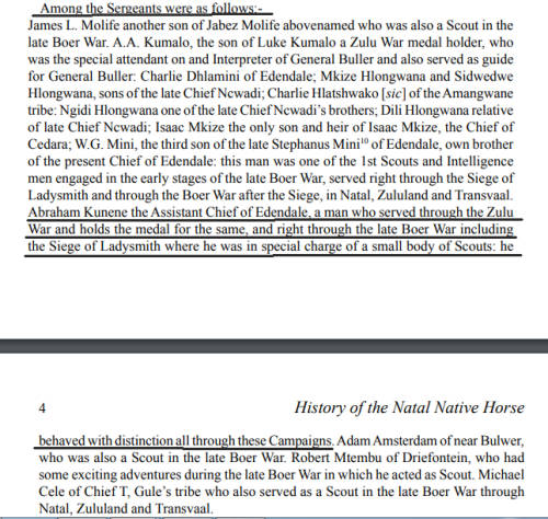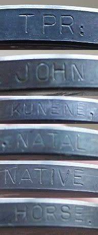 Trooper John Kunene was from Edendale , Pietermaritzburg, who served in the Natal Native Horse during the 1906 Natal Rebellion.He was either the son of or relative of Sergeant Abraham Kunene (Assistant Chief of Edendale).