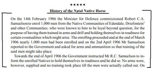 Included in the auction is an extract taken from the angloboerwar.com website, which lists the African recipients of the 1906 medal, extracts from Tylden's book on the Natal Native Horse and 9 Pages on the history of the Natal Native Horse, which appeared in Natalia 35 (2005)