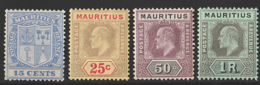 1910 Mauritius Arms Set of 15. Mounted Mint except for the 6c which is Fine Used.