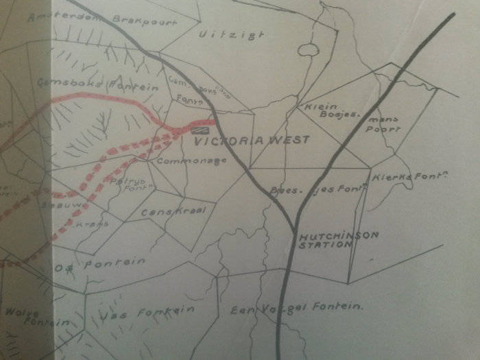 1912 SAR/ZAS Railway Map - Proposed Route Victoria West to Twee Riviers
