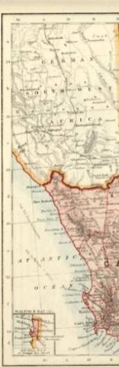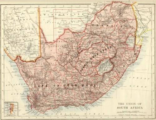 The map is in full color with no fading evident, the paper is firm sharp and crisp. Original 1914 Johnstone map of South Africa. The reverse of the map has a enlarged view of the Orange Free State, Transvaal and Natal as well as Basuto Land(Modern day Lesotho).