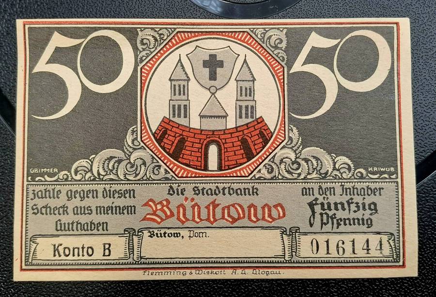 POSTAGE WILL BE COMBINED:Collection in Mondeor Johannesburg:Tip: To save on shipping -Buy more than one of My 1900+ Items-1922 German notgeld 50 Pfennigs City of Bütow (Prussian province of Pomerania)Uncirculated ConditionFeatures |