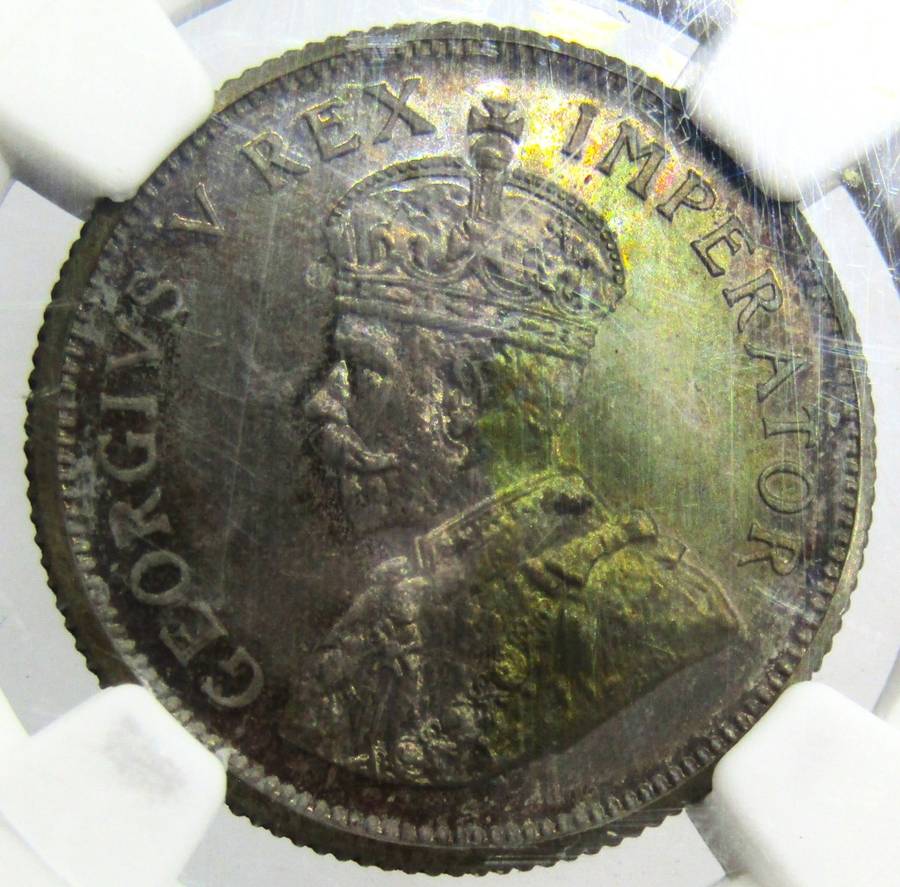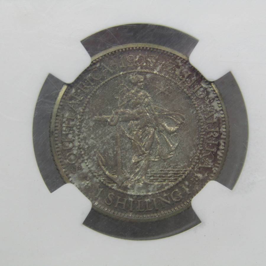 The first year of issue Union proof and thus a firm favourite amongst collectors.a low mintage of only 1402 pieces,this particular example came from an even rarer long proof set and it displays its 101 yrs with a very distinctive and attractive toning .amongst the highest graded 1923 shillings at pf65 ,and extremely collectible.