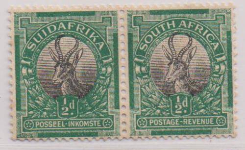A 1927 PTA-printing 1/2d horizontal pair with the extremely scarce variety "offset of vignette on the back" (UHB 3 V11) in MNH-condition. This is an exceptionally scarce pair. Some toning and gum discoloration unfortunately noted.