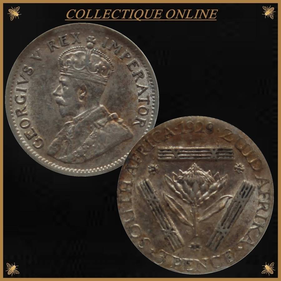 1929 : UNION S. A. : THREE PENCE : COIN IN AU 53