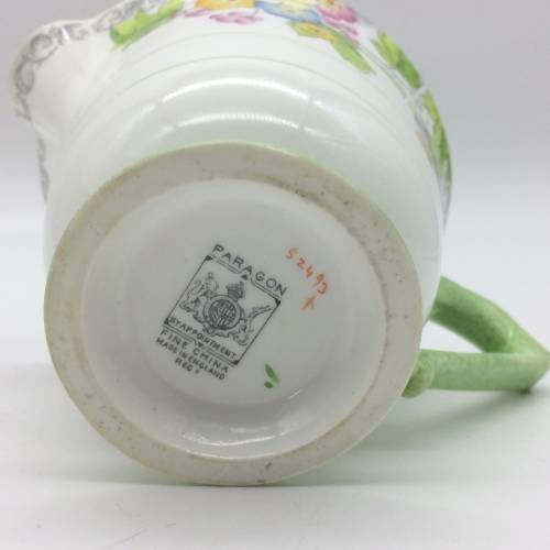 This lovely Paragon milk jug is beautifully decorated with a floral pattern on a cream background. It is in excellent condition and measures 8cm in height and 14cm in width (spout to handle).