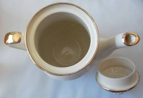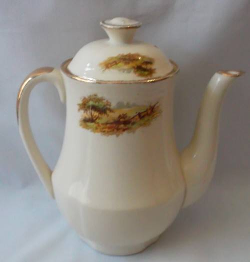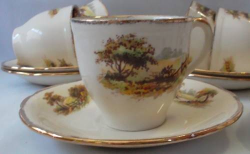 Set consists of 1 x Coffee pot, 1 x milk and sugar set, 6 x cups and saucers.