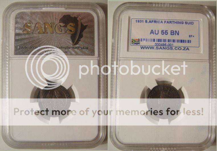 1931 (Suid) Farthing (Quarter Penny) : Sangs graded AU55 BN