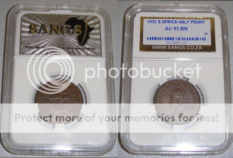 1932 Half-Penny: Union of South Africa : Sangs graded AU53 BN