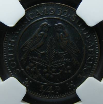 1932 SA UNION FARTHING. NGC graded AU 58 BN.  .  LOW MINTAGE OF 105403