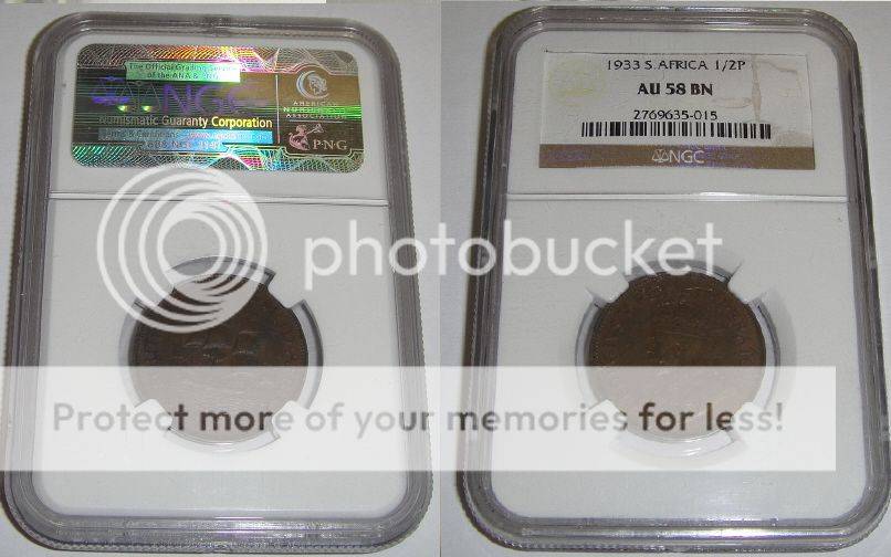 1933 Half Penny: Union of South Africa: NGC graded AU58 BN (almost MINT STATE)