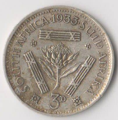 Condition As Per Scans.1933 UNION OF SOUTH AFRICA 3d TICKEY SILVER COIN