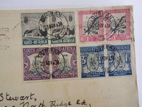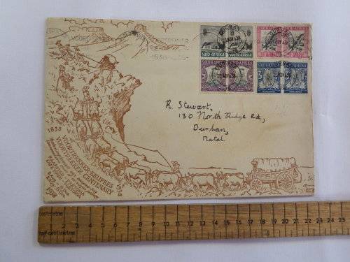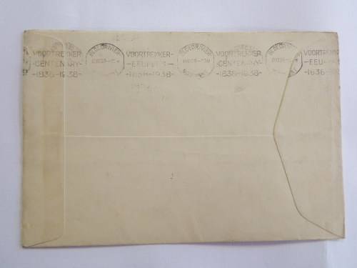 1933 Voortrekker memorial fund postal cover - Cancelled in Durban 23 November 1938 - Centenary