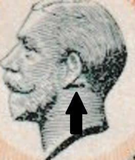 A 6d horizontal pair of the KGV Silver Jubilee Commemorative issue with UHB 61 V6 (Gash behind ear variety) as illustrated above in excellent very lightly MM-condition.