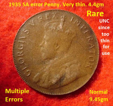 1935 SA 1d. Multiple errors. Very thin and crack at 3 o`clock and half weight. 1935 SA 1d. Multiple errors. Very thin and crack at 3 o`clock and half weight. 1935 SA 1d. Multiple errors. Very thin and crack at 3 o`clock and half weight.