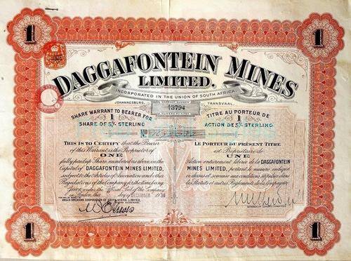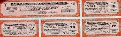 1936 Anglo American's Daggafontein Shares Certificate and Share Coupons