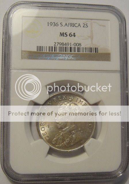1936 Two-Shilling (2/-) : South Africa: NGC graded MS64