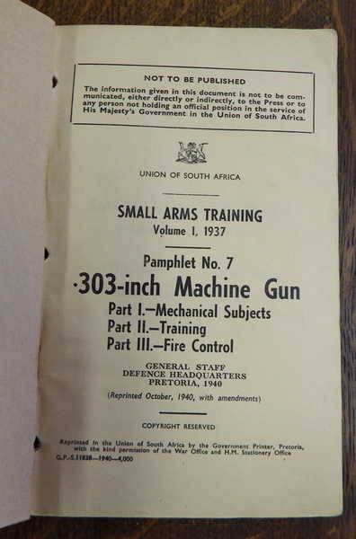 1937 Pre WW2 Small Arms Training book - Union of South Africa - For the .303 machine gun - Scarce