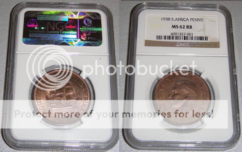 1938 Penny (1d) : Union of South Africa : NGC graded MS62 RB (MINT STATE)