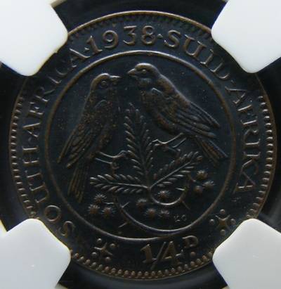 1938 SA UNION FARTHING. NGC graded AU 55 BN.  .  LOW MINTAGE OF 51296
