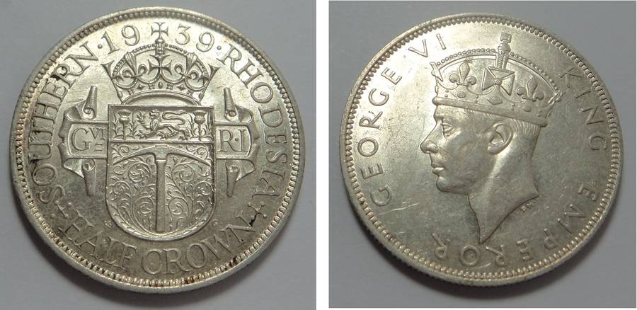 1939 Silver Half Crown (2/6-) Southern Rhodesia