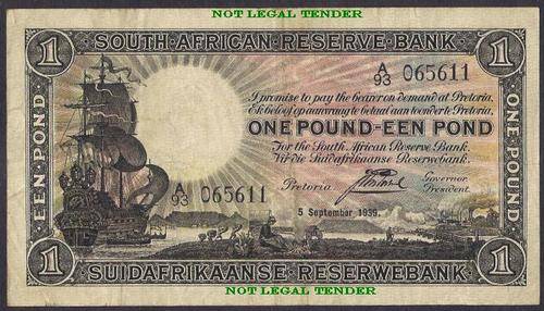 As Per Scans.1939 SOUTH AFRICA J POSTMUS ONE POUND BANKNOTE