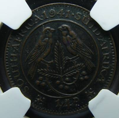 1941 SA UNION FARTHING. NGC graded AU 53 BN . LOW MINTAGE OF 91160