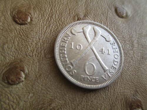 1941 SOUTHERN RHODESIA STERLING SILVER 6 D...VERY COLLECTABLE