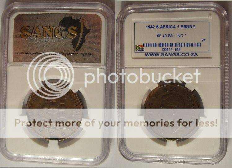 1942 Penny : Union of South Africa : Sangs graded XF40 BN (NO STAR after the date)